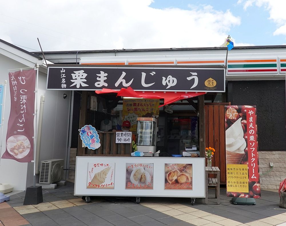 トンネル連続地帯を抜けて山江サービスエリアへ。山江は栗が有名らしく、「栗んとう」(かりんとうの栗バージョン?)や団子、栗を使ったソフトクリームも。人気はそのソフトクリームのよう。ほんのり栗の香りがする、甘くて優しい味。おいしい。けれど溶けるのが早い