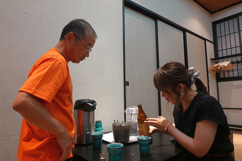 飲み物にあらわざ桜島という25度の焼酎をオーダー。芋焼酎は匂いが苦手という人もいると思いますが、そこまで強くなく、味もすっきりとしていて飲みやすい。くまさんはじゅんじゅんさんに水割りの作り方を手ほどき