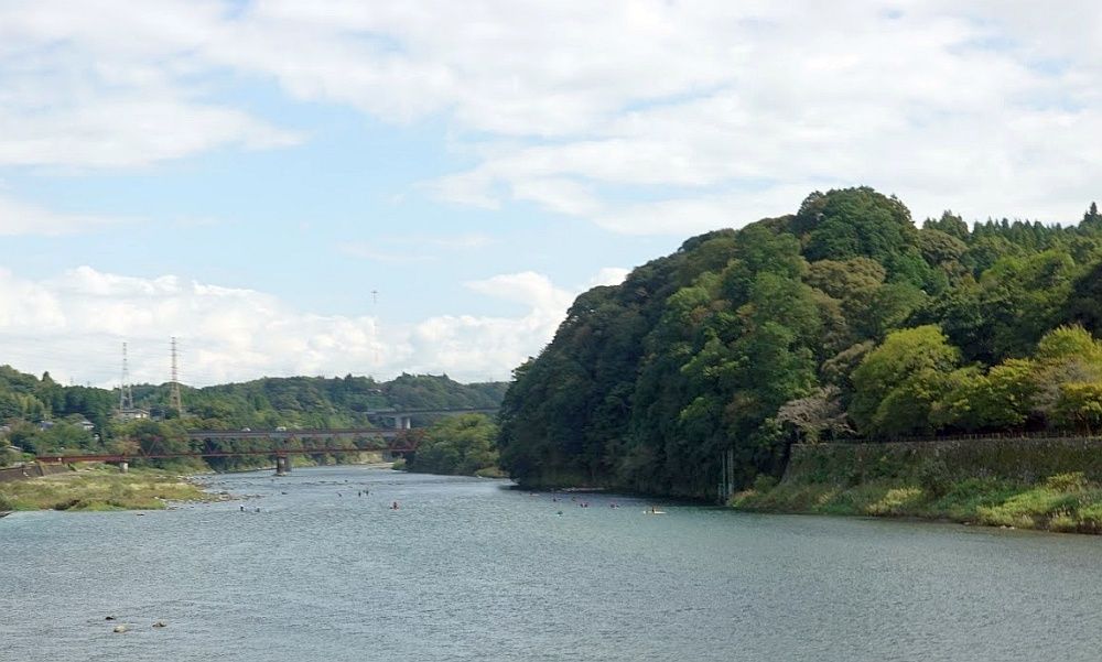 。運転はれのんさんから吉永さんに交替、近くのインターを降りて人吉市内を通過していきます。が、カーナビがわざわざ大通りを避けて1車線しかない道を案内。車はなんといってもハイエース。「えええええ?」。吉永さんの困惑の声を聞きながら、狭い道を進みます。曽木の滝の駐車場に到着。滝を見る前に、予約していたお店へ。お昼ご飯