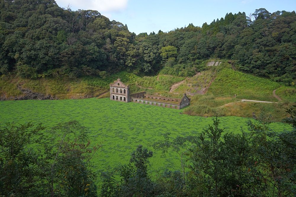 。それはさておき、斜面を使って作られた庭園や張り巡らされた水路。それに製鉄所の跡も。確かに長州人もびっくりの規模です。もちろん庭園は桜島を借景に。贅沢です。